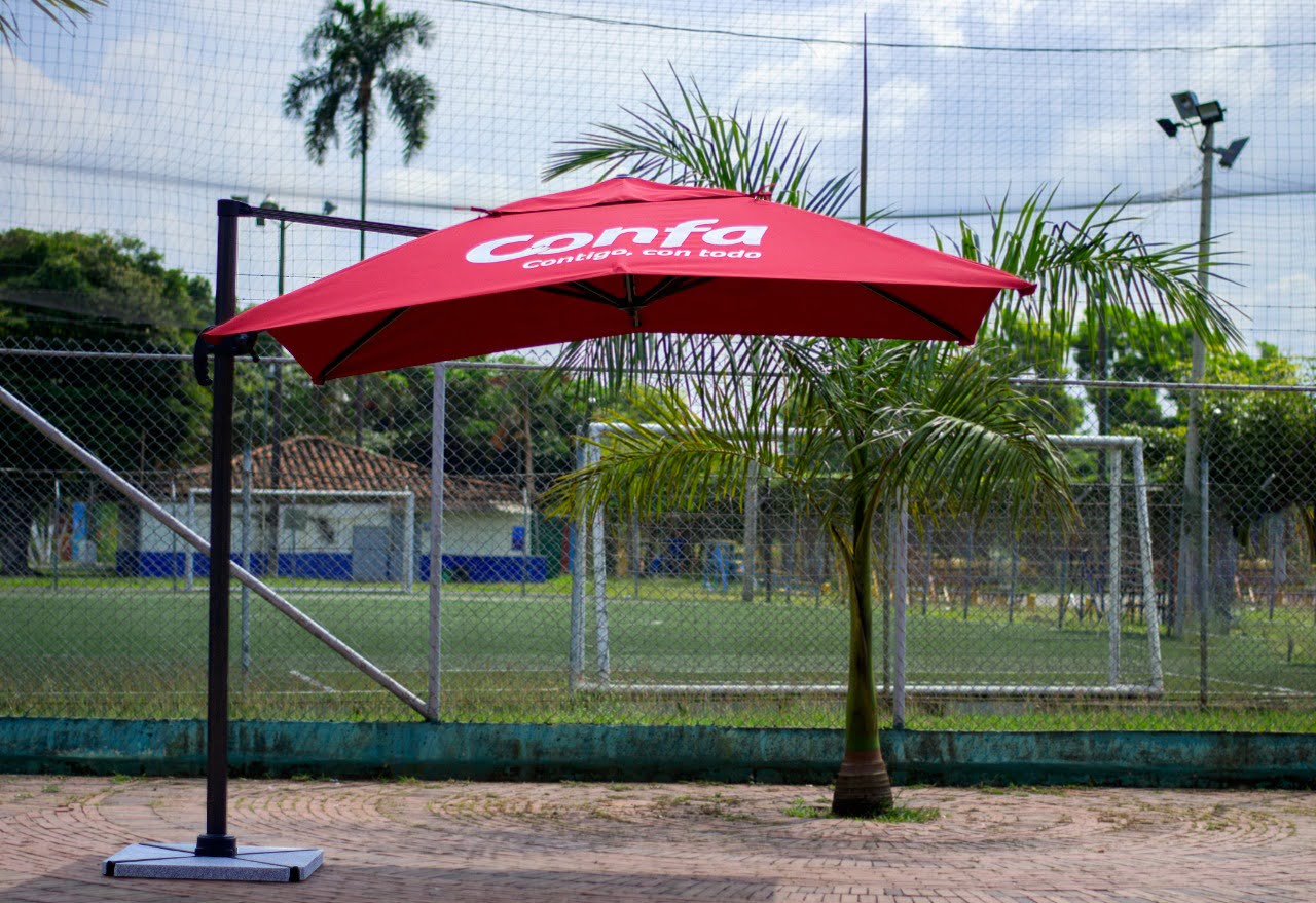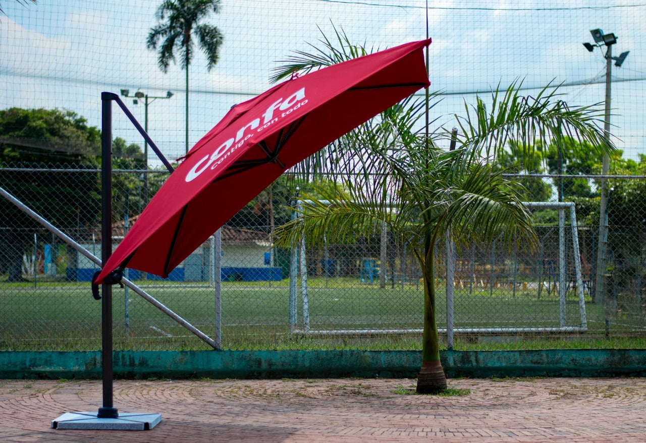 Elaboramos todo tipo de sombrillas, con estructura metálica, de aluminio o en madera de granadillo, ideal para cubrir zonas pequeñas. Ofrecemos la sombrilla individual o el juego con mesa y sillas en madera de granadillo. Carpas Impermeables de excelente calidad.